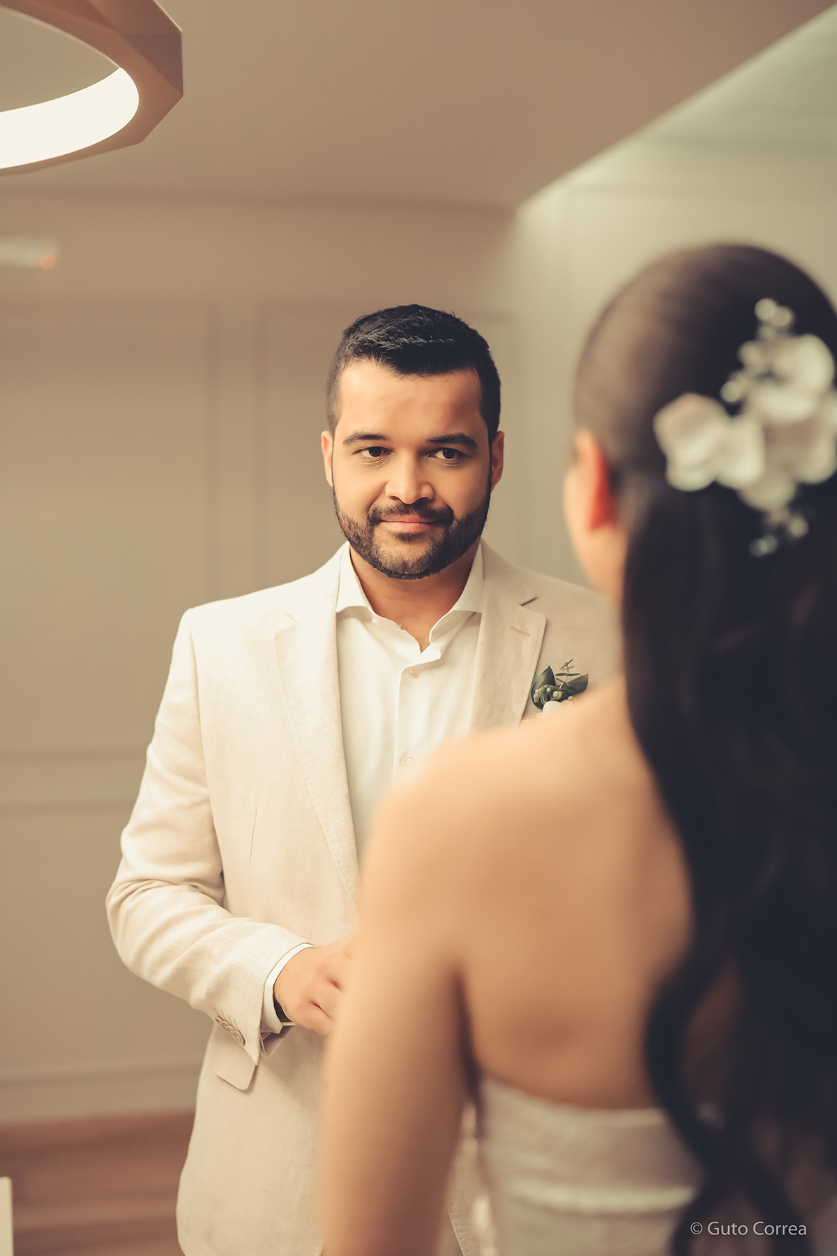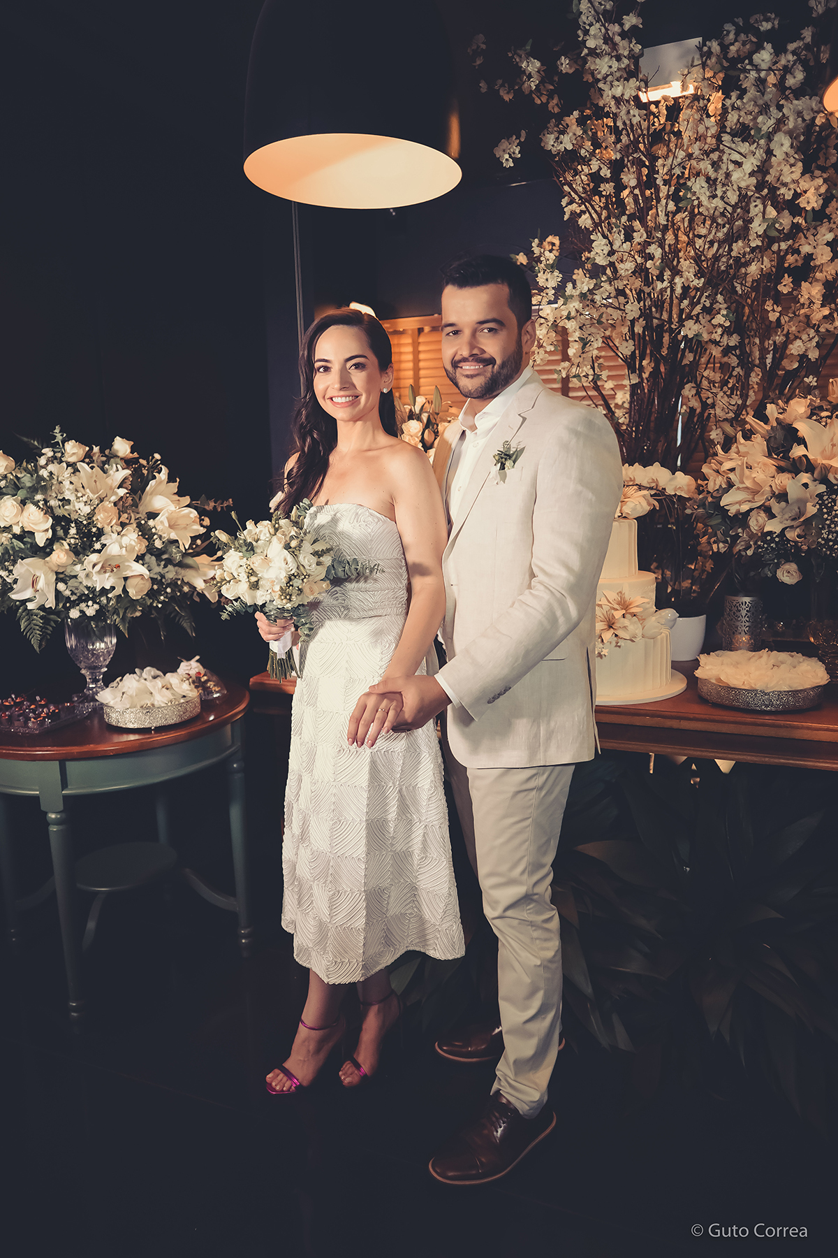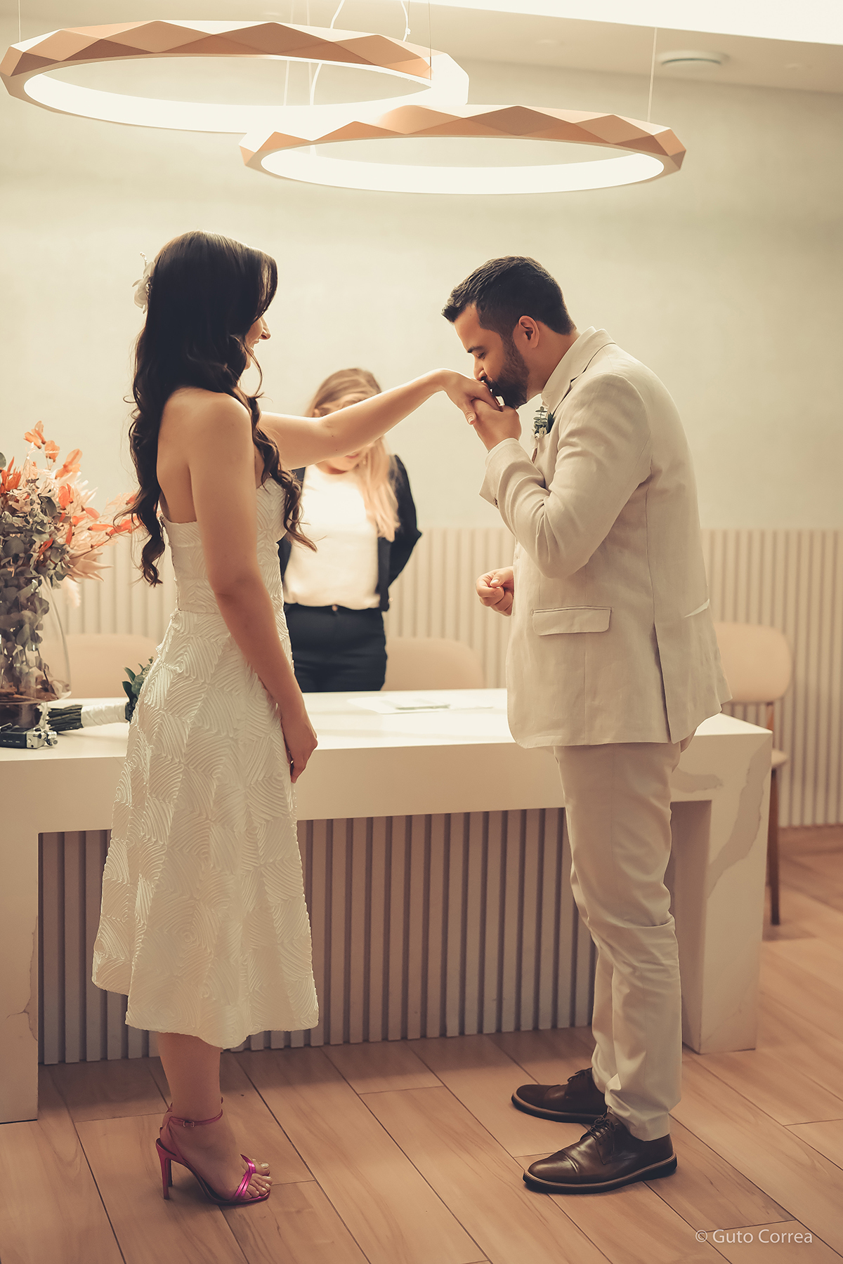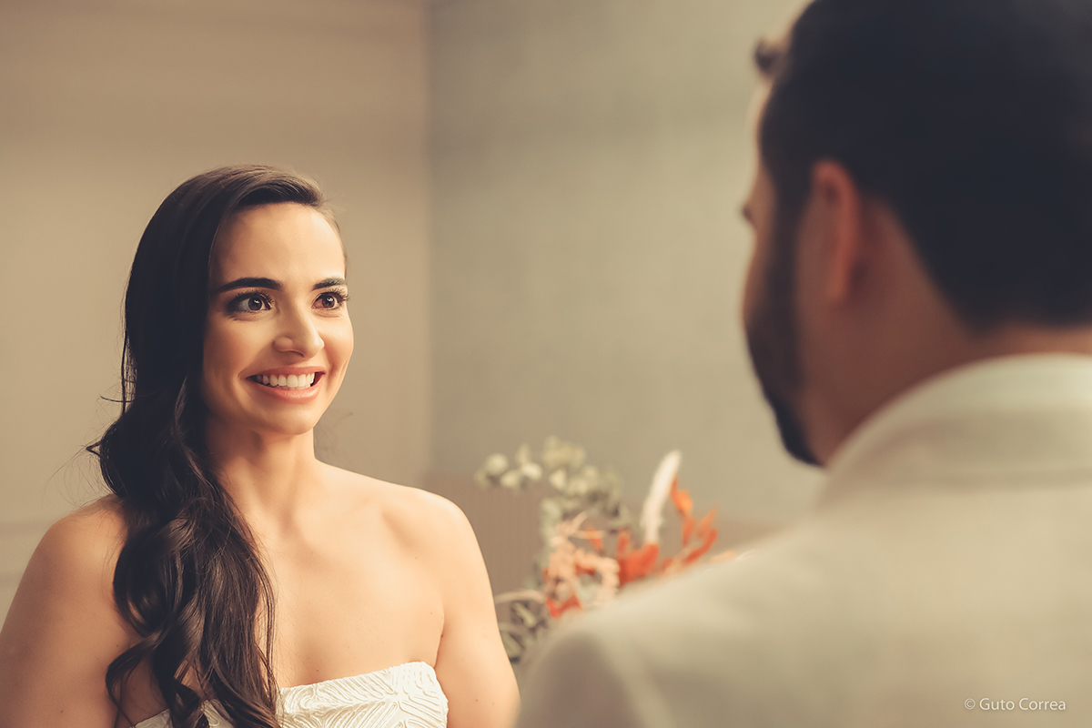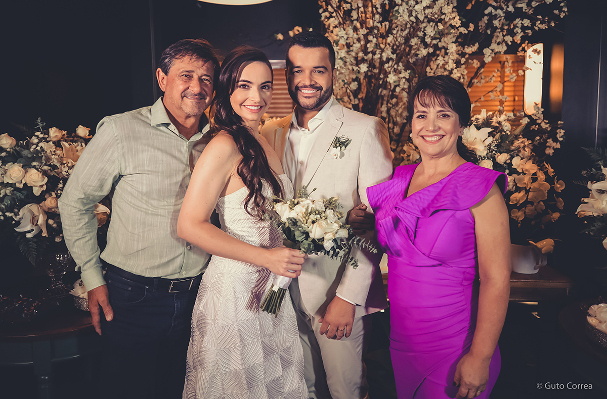 Decidimos oficializar a nossa união no dia 02/02/2024, em meio a inúmeras mudanças em nossas vidas: casa, cidade, trabalho, estudos… Ter esse tempo dedicado ao nosso amor, fortaleceu ainda mais o compromisso de casal. Esperamos compartilhar este companheirismo para sempre e manter aquela mesma amizade, que começou há mais de 10 anos, como a base da nossa família.”