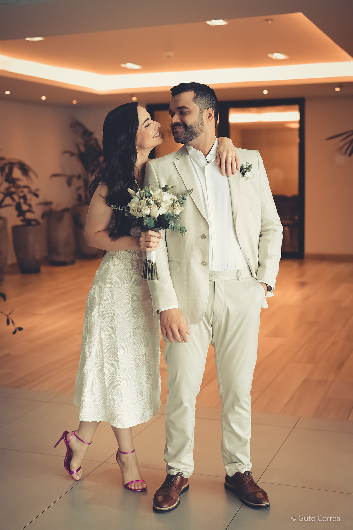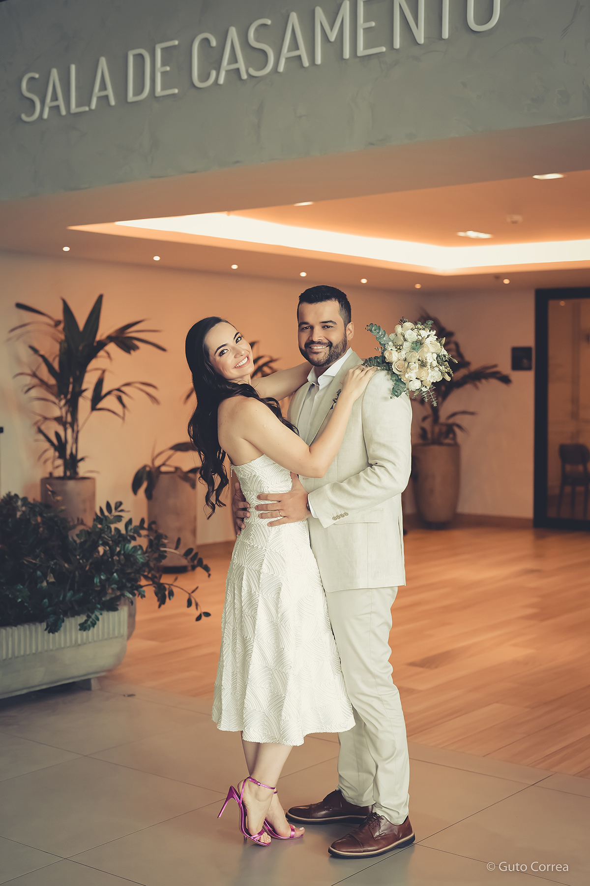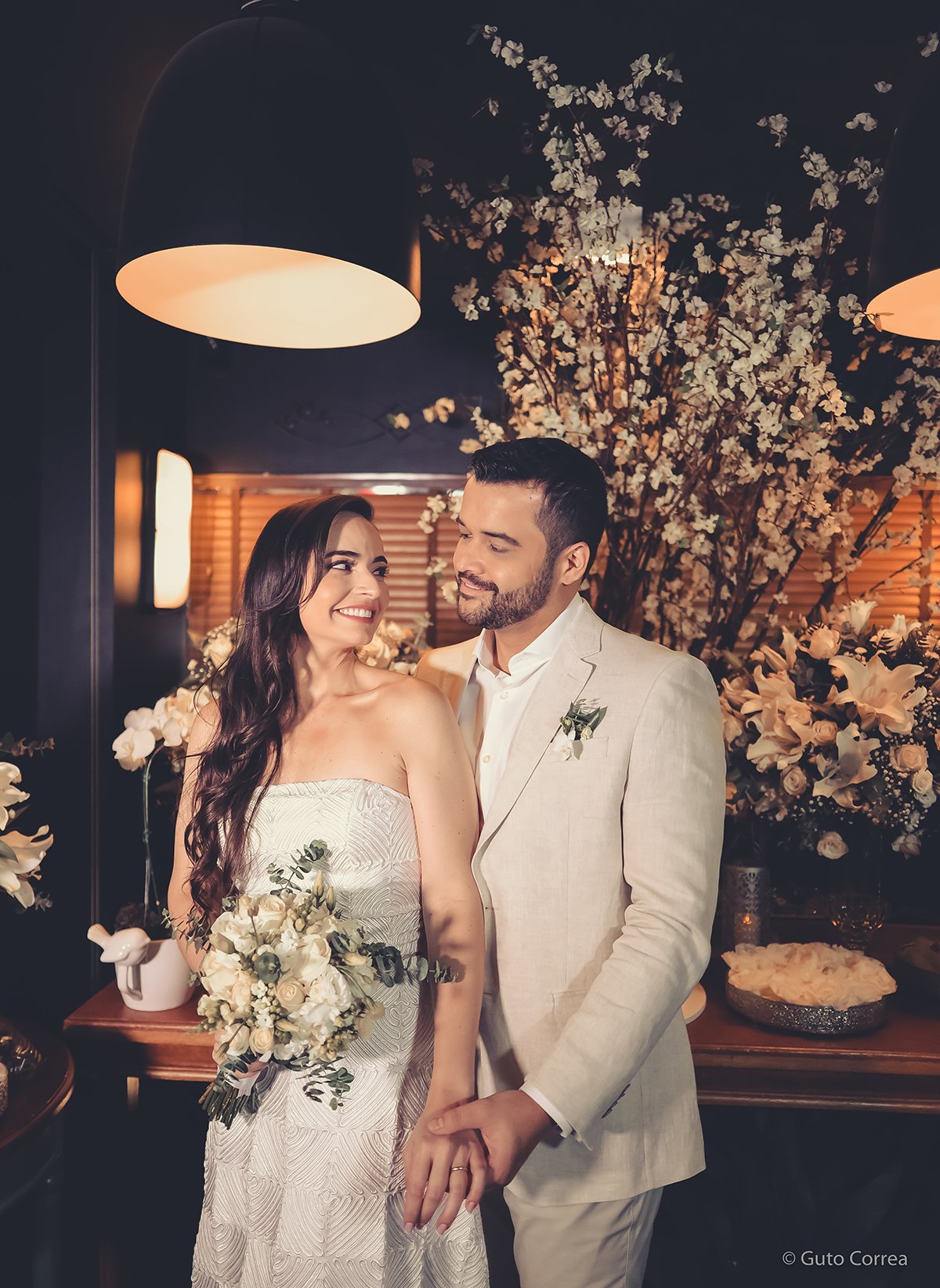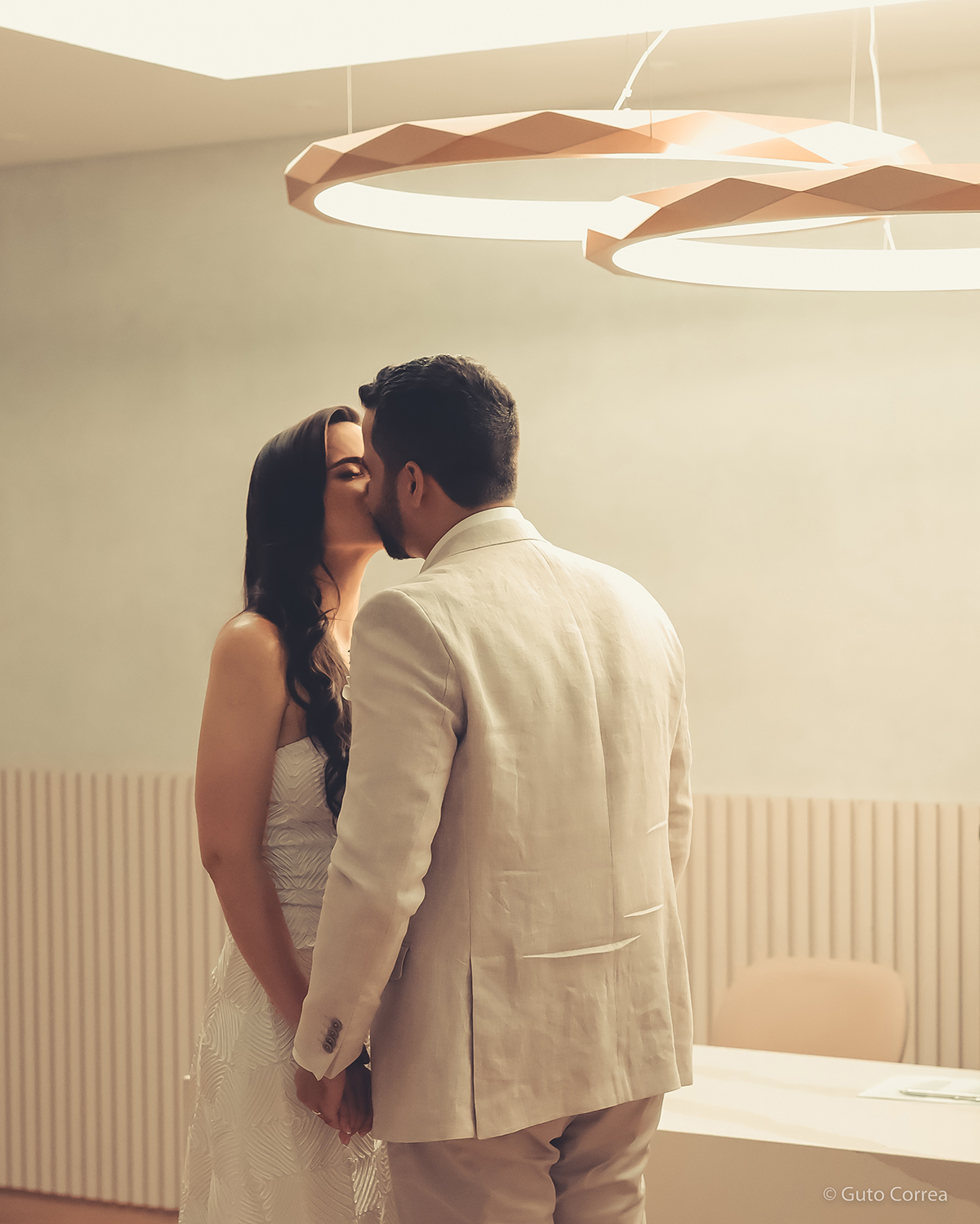 Decidimos oficializar a nossa união no dia 02/02/2024, em meio a inúmeras mudanças em nossas vidas: casa, cidade, trabalho, estudos… Ter esse tempo dedicado ao nosso amor, fortaleceu ainda mais o compromisso de casal. Esperamos compartilhar este companheirismo para sempre e manter aquela mesma amizade, que começou há mais de 10 anos, como a base da nossa família.”