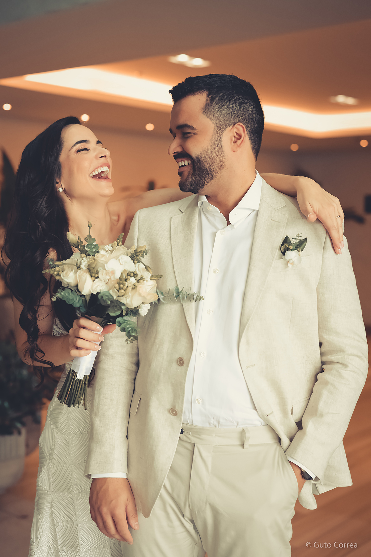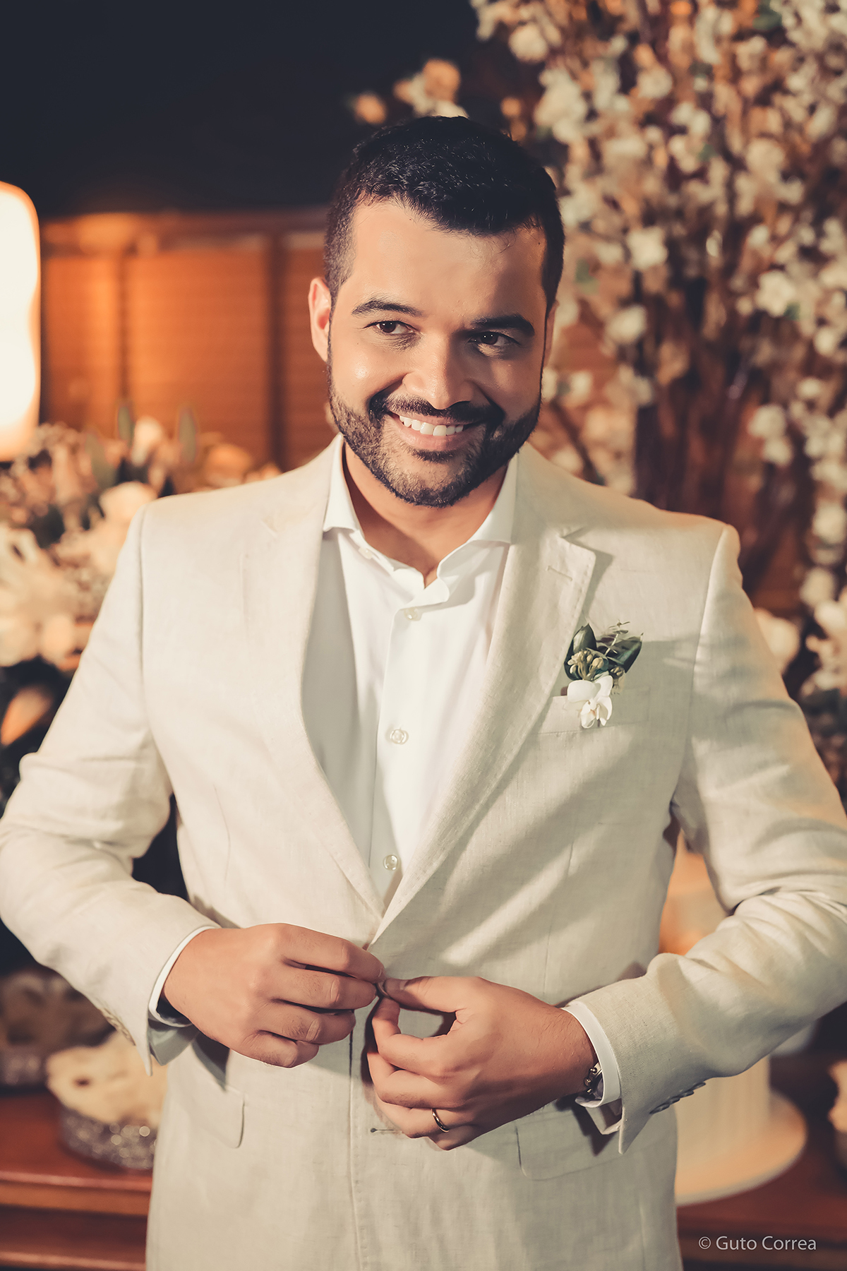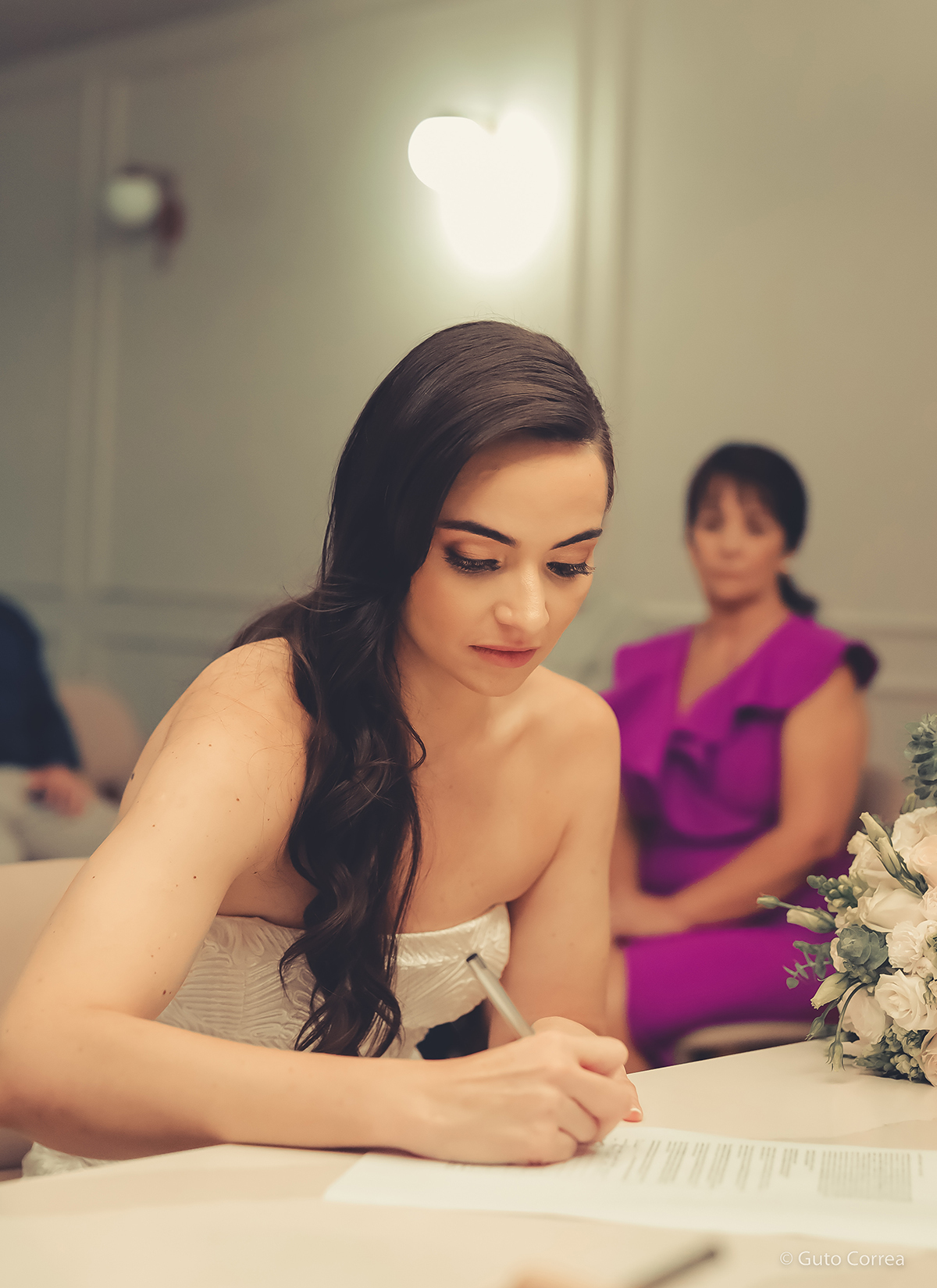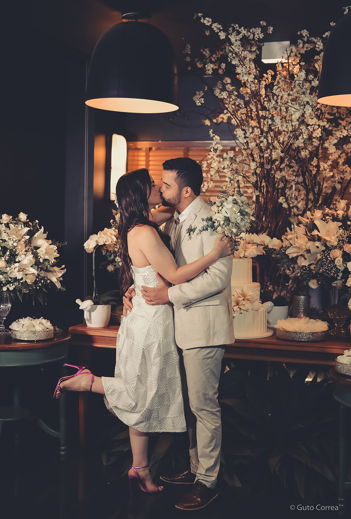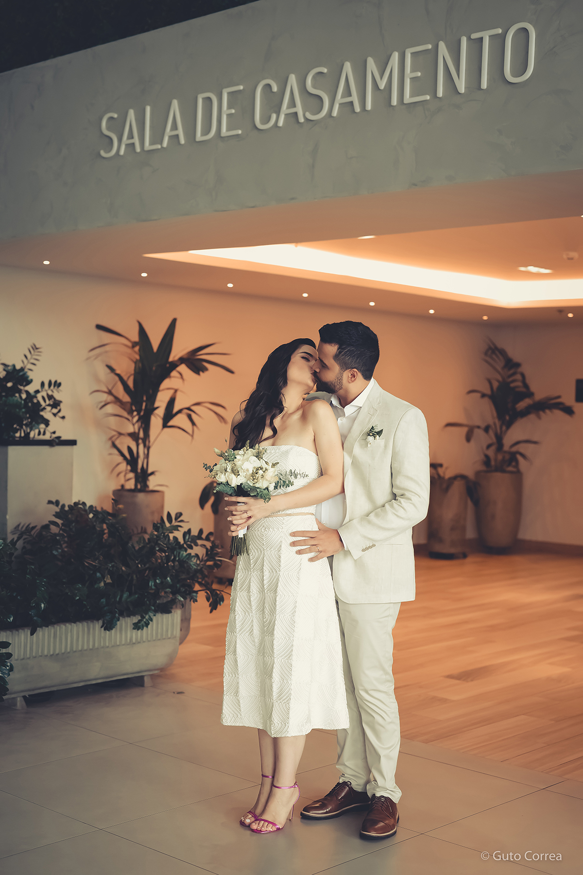 Decidimos oficializar a nossa união no dia 02/02/2024, em meio a inúmeras mudanças em nossas vidas: casa, cidade, trabalho, estudos… Ter esse tempo dedicado ao nosso amor, fortaleceu ainda mais o compromisso de casal. Esperamos compartilhar este companheirismo para sempre e manter aquela mesma amizade, que começou há mais de 10 anos, como a base da nossa família.”