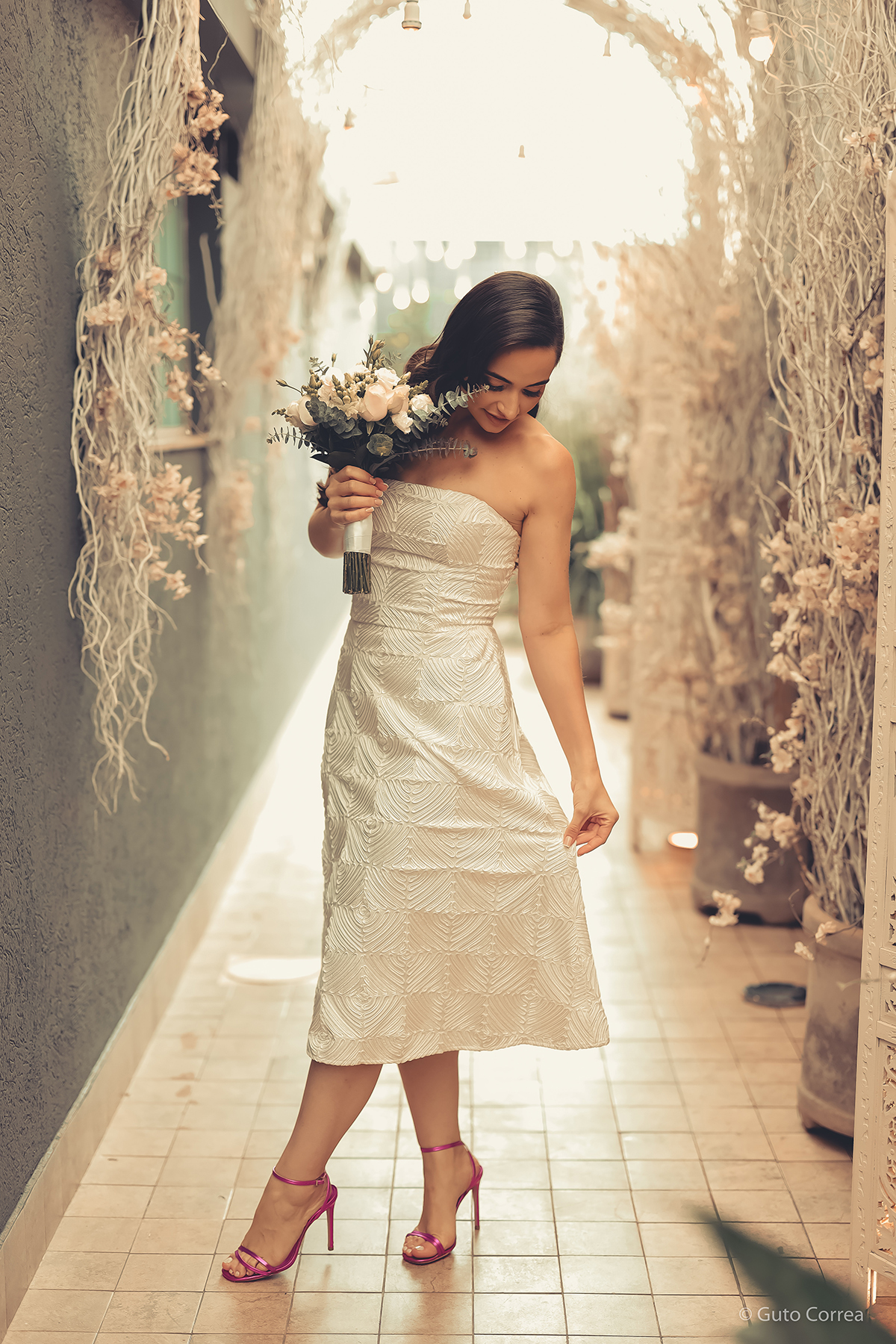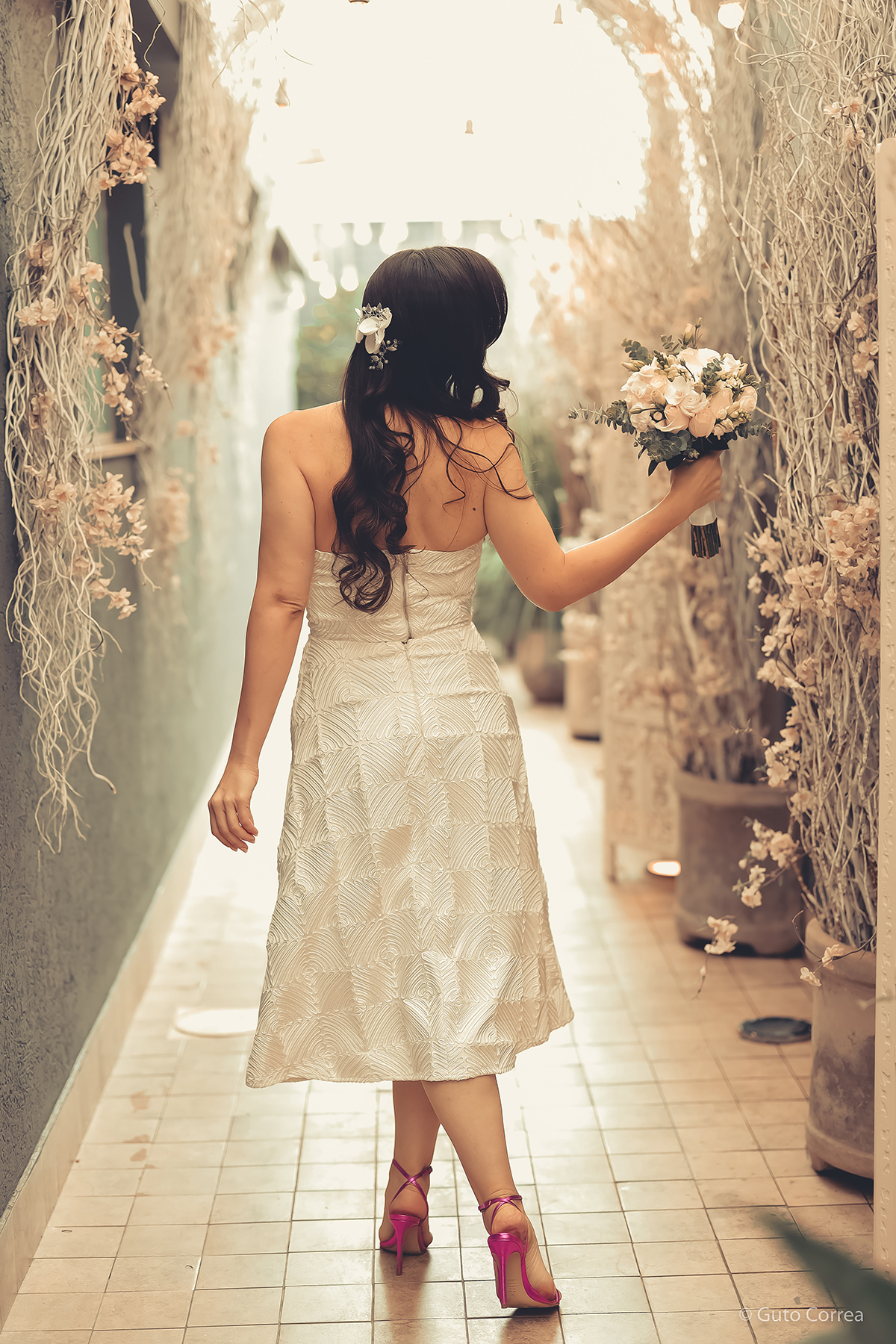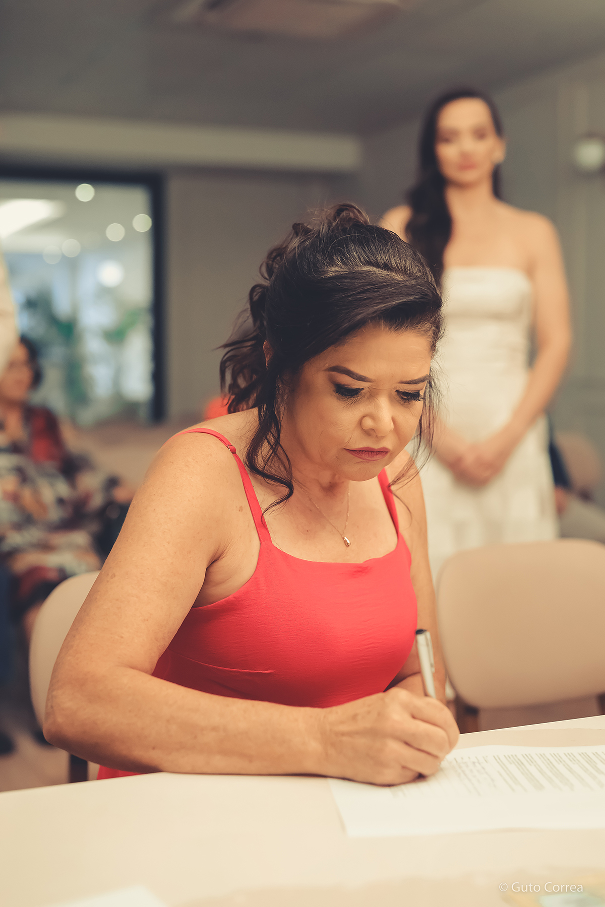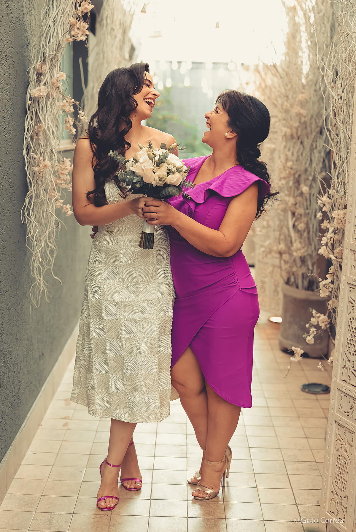 Decidimos oficializar a nossa união no dia 02/02/2024, em meio a inúmeras mudanças em nossas vidas: casa, cidade, trabalho, estudos… Ter esse tempo dedicado ao nosso amor, fortaleceu ainda mais o compromisso de casal. Esperamos compartilhar este companheirismo para sempre e manter aquela mesma amizade, que começou há mais de 10 anos, como a base da nossa família.”