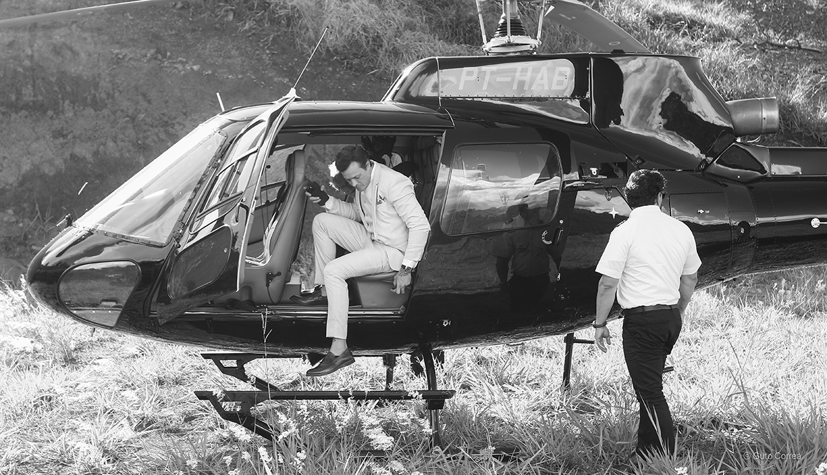 Mas a fotografia e o vídeo vivem de luz e coragem. A chegada triunfal de helicóptero, o reflexo do pôr do sol na represa e a força do casal transformaram o que seria um desafio climático em uma das cinematografias mais lindas que já registramos.