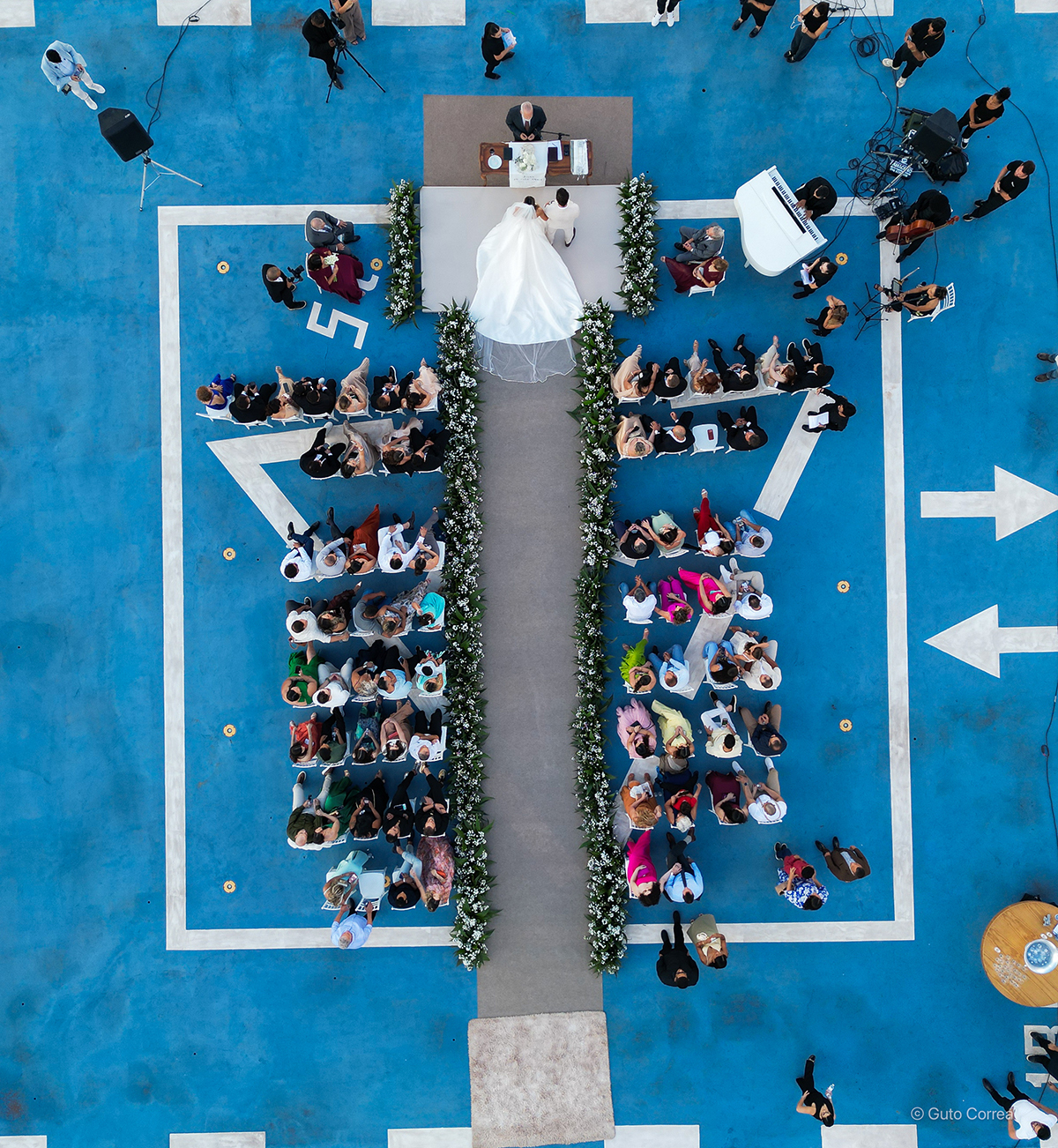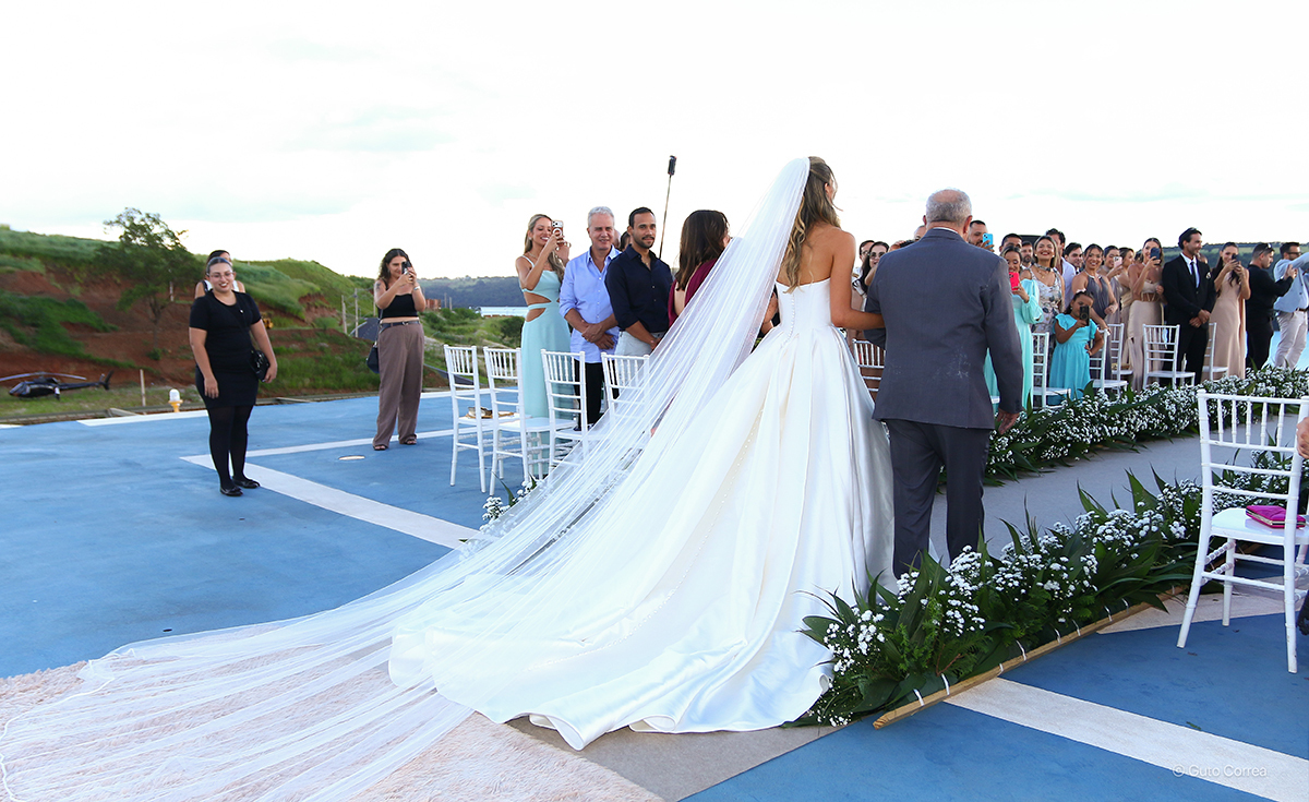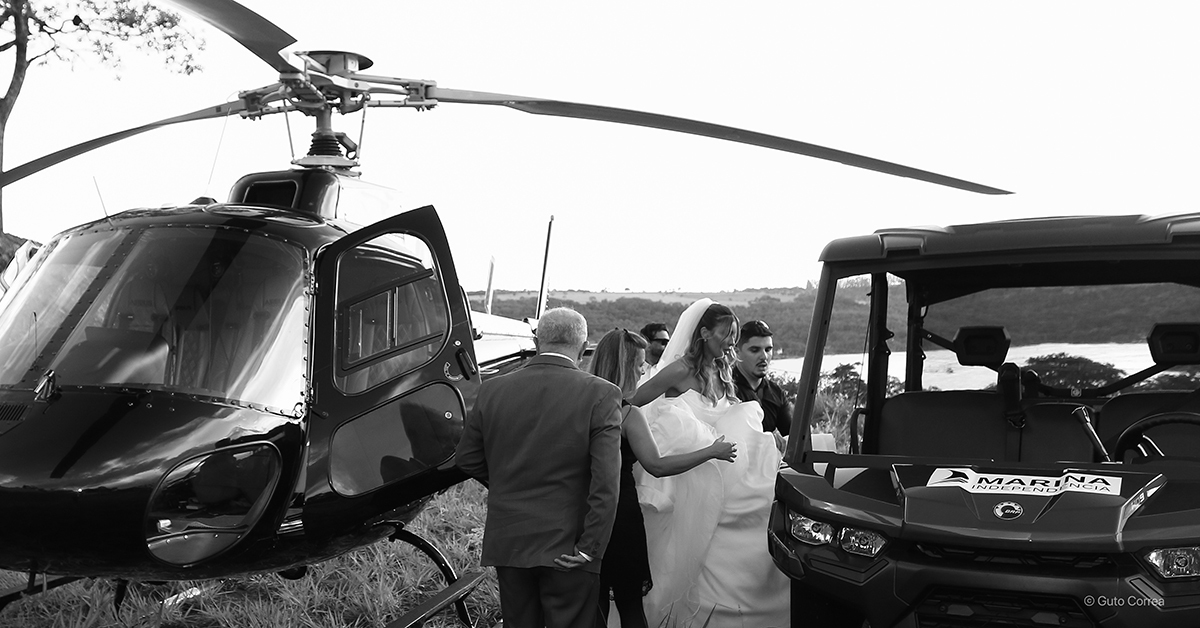 Trabalhar com eventos ao vivo nos ensina que o imprevisto faz parte da magia. Quando a previsão apontou chuva para um casamento planejado inteiramente ao ar livre — e em um heliponto! — a ansiedade bateu forte.