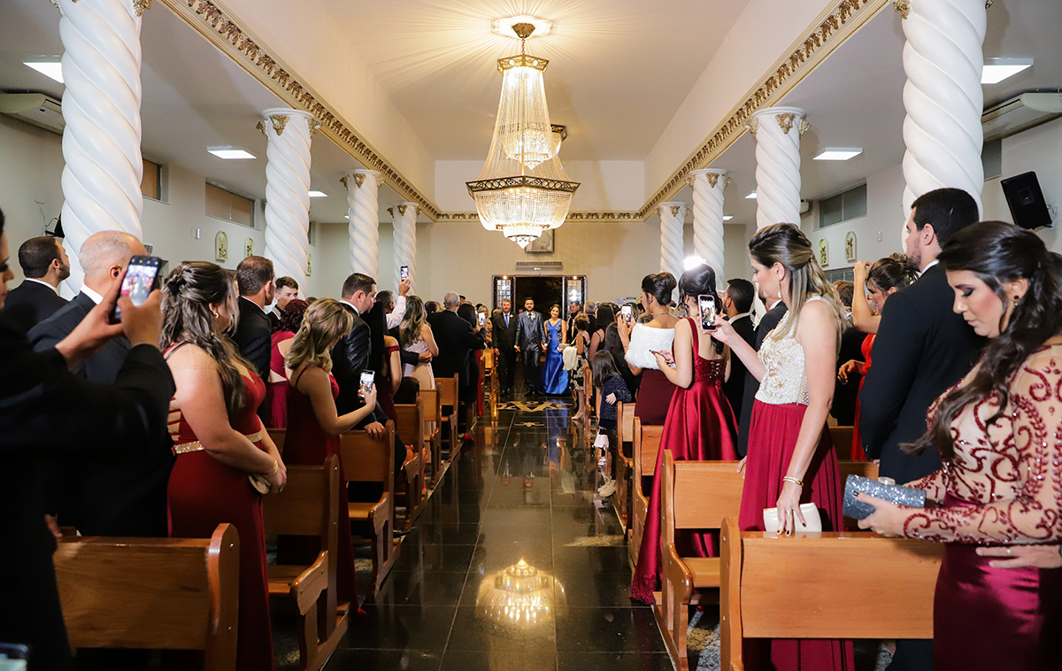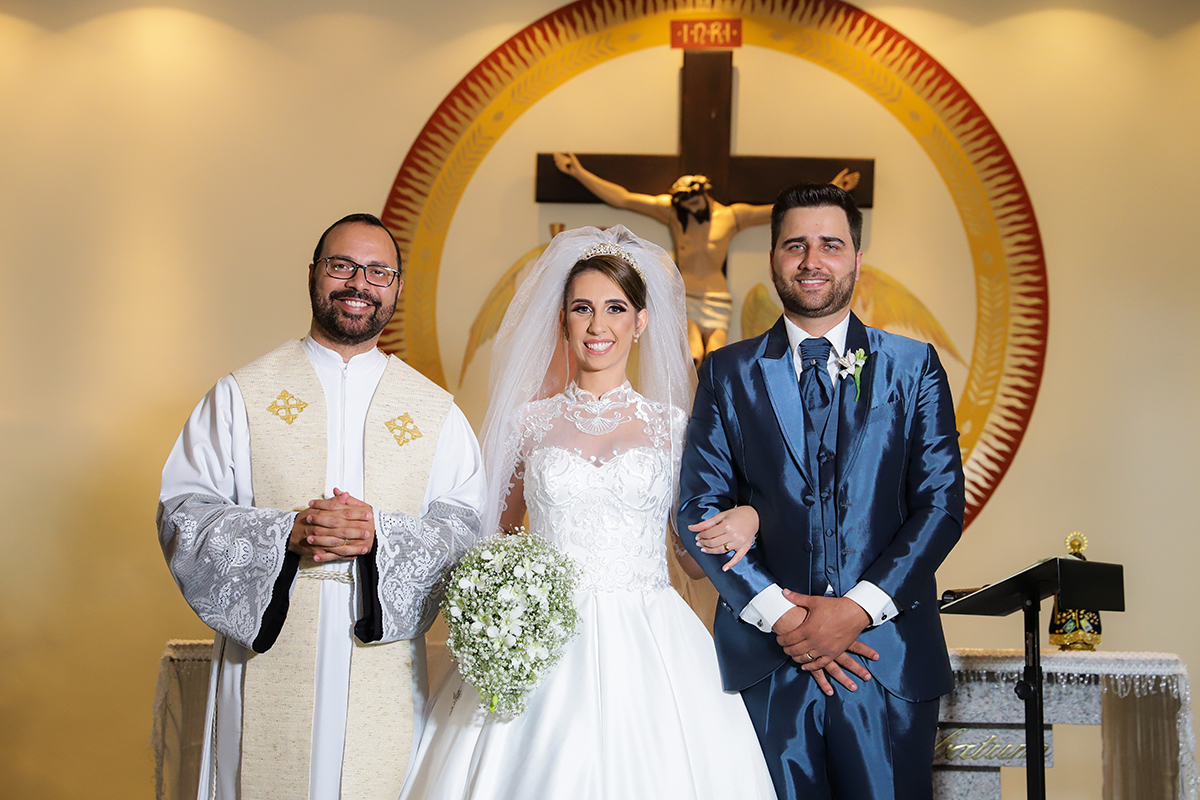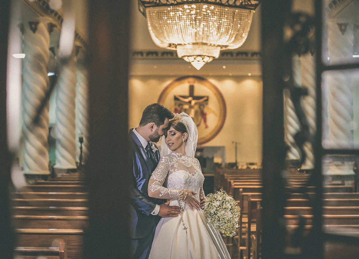 Linécy e Pablo casaram na Igreja São Cristóvão com Recepção no salão de festas Tropical Hall.