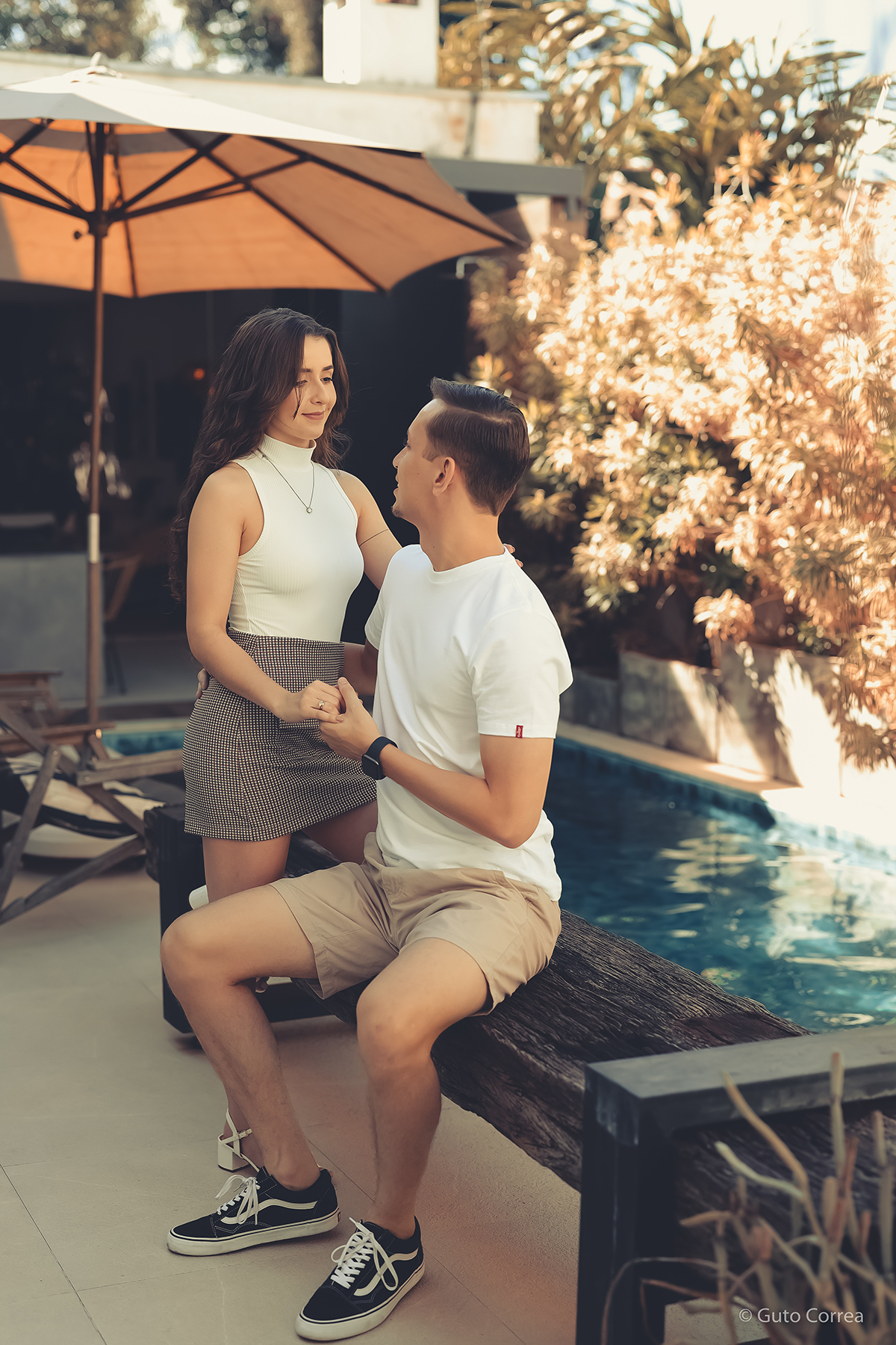 Tudo começou na UFU em 2017, a Bianca estava no primeiro período da faculdade e coincidentemente o Gustavo, que fazia o mesmo curso e já estava no nono período, ficou responsável por ministrar um projeto de Introdução ao curso de Engenharia de Telecomunicações. Não chegamos a conversar naquela época, mas um ano e meio depois, em 2019, por meio de amigos em comum, a história começou. O pedido de namoro veio 2 meses depois, no famoso bar da Dona Antônia. Temos gostos muito parecidos para algumas coisas, e completamente diferente para outras, mas que se completam de uma forma única. Sempre gostamos muito de viajar, ir em shows e sair com amigos, e juntos conhecemos novas experiências e lugares. Com 3 anos de namoro, após começarmos a trabalhar, fomos morar juntos e iniciamos uma nova fase como casal, criando laços ainda mais fortes, e mesmo que o casamento fosse um destino claro para os dois, queríamos primeiro conquistar nossas coisas e nosso lugar. O pedido de casamento foi feito em Agosto de 2023, marcamos para Julho de 2024, e felizmente conseguimos planejar esse momento único e especial do jeitinho que a gente sonhou. Nosso relacionamento sempre foi repleto de amor, admiração e respeito, tudo que queremos passar adiante para essa nova família que vamos construir nos anos que virão, e não temos dúvidas de que será um lindo Para Sempre!