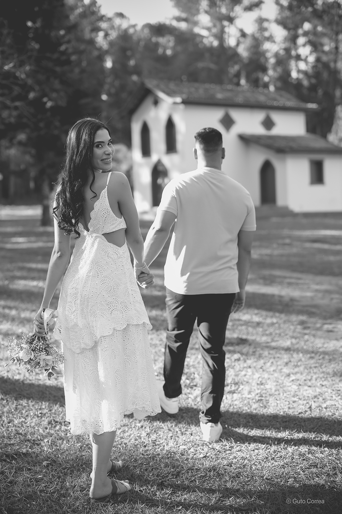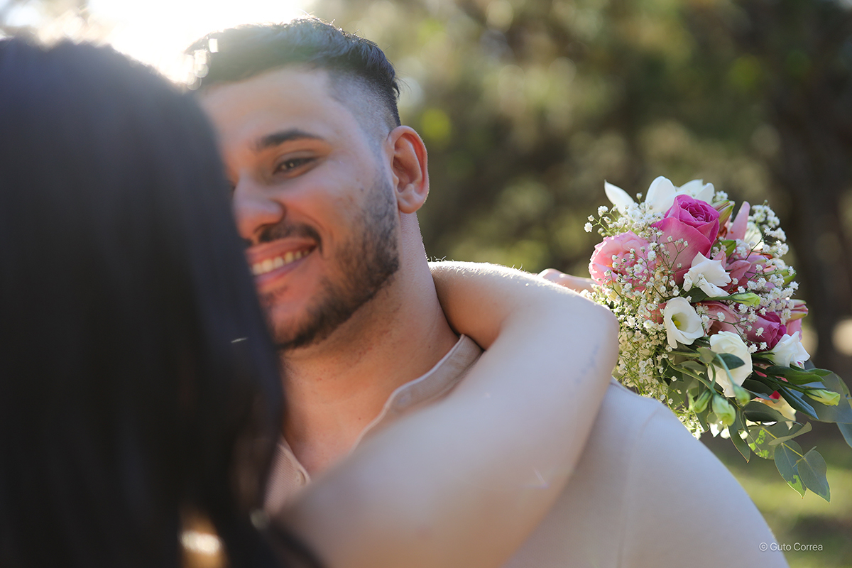 Tudo começou em 2015, numa cena que parece até tirada de um filme. Gabriel passou em frente a uma pracinha, me viu ali sentada e, com a certeza que só o coração pode explicar, disse ao seu melhor amigo: “Um dia eu vou me casar com aquela moça”.
