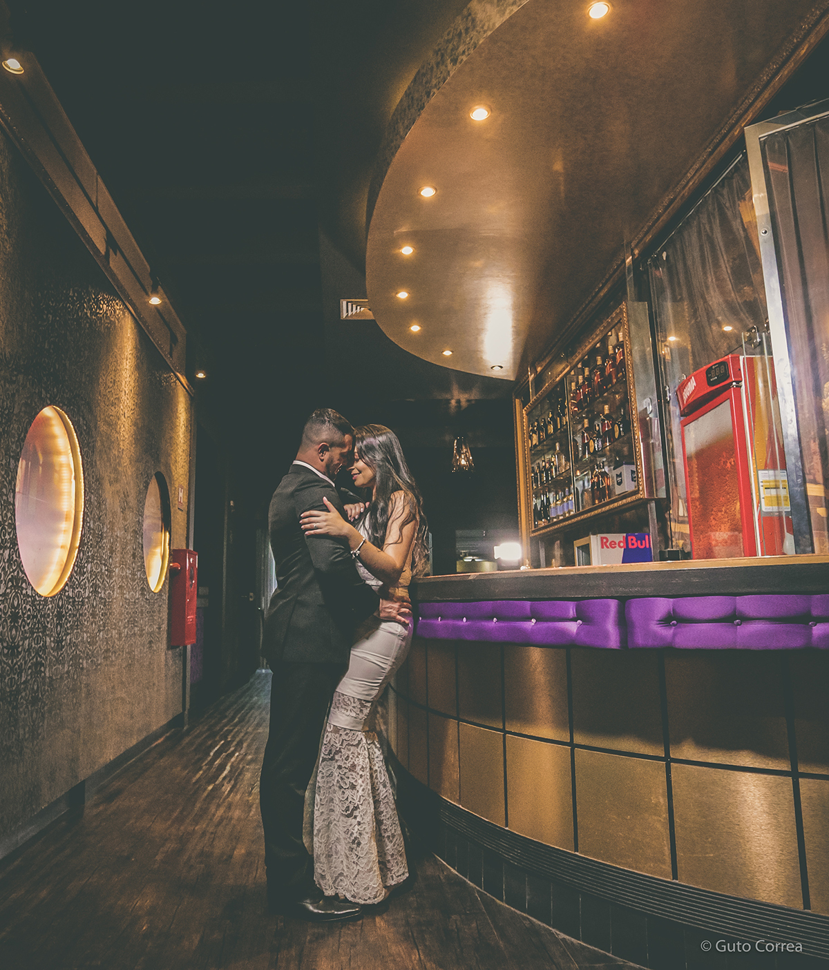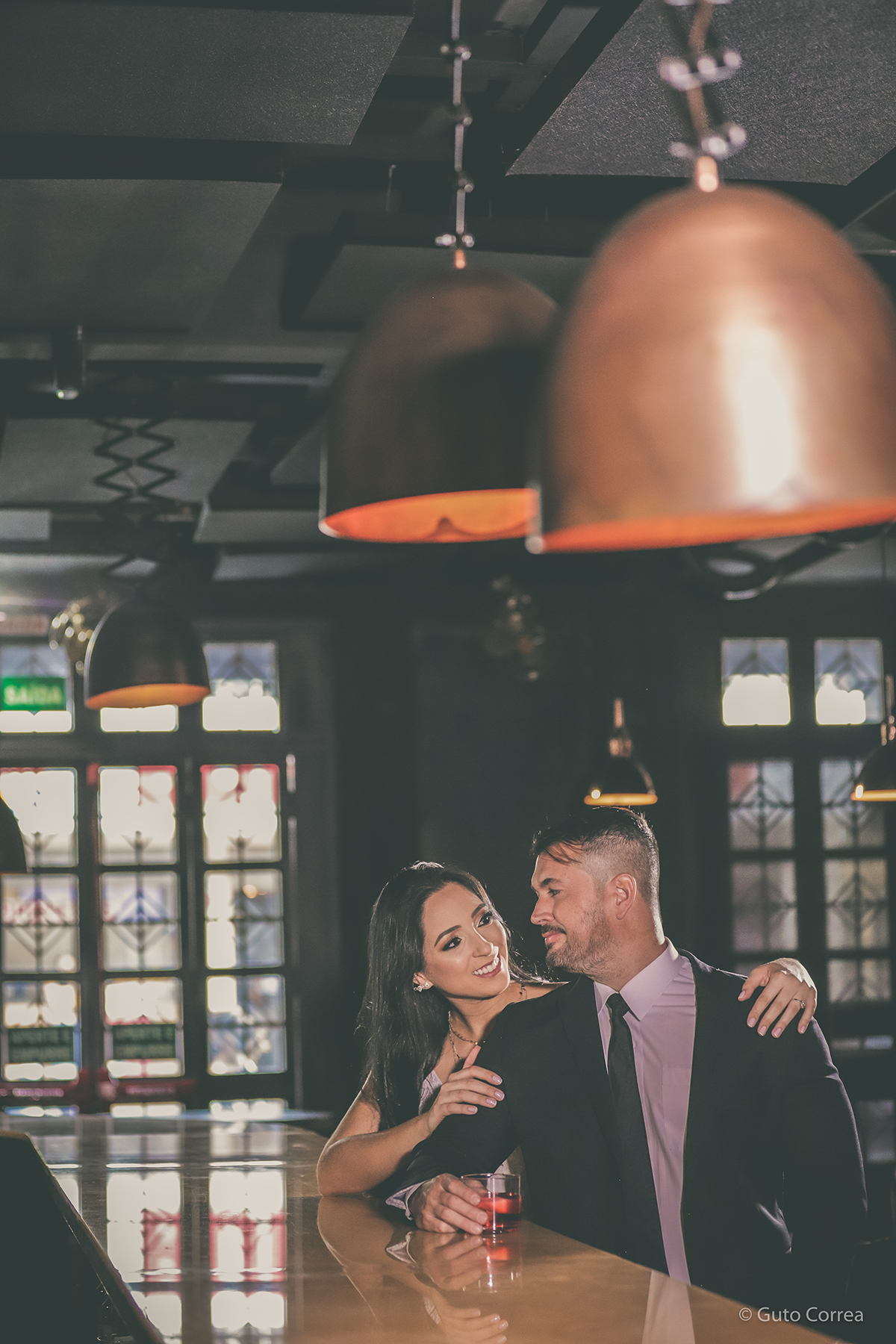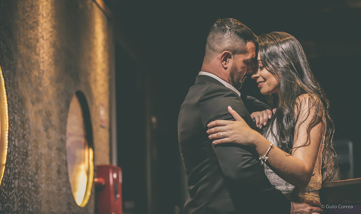 Para mim, o homem mais lindo da boate! E ele estava ali sorrindo e acenando para mim! Parei de dançar de tamanha vergonha com os olhares que ele me lançava e fiquei pararalisada. Tão logo, ele chegou de surpresa e me sussurrou um oi, daqueles que bambeiam as pernas! Após minutos de conversa, desabafei minha vida inteira para um desconhecido lindo que estava ali na minha frente. Achando que ele iria correr, ele ficou!! E segundo ele, foi aí que se apaixonou! Trocamos telefone e fomos embora. Fiquei apaixonada de primeira e passei a acreditar que existe amor à primeira vista! Voltamos a nos encontrar no barzinho no domingo. Foi então que ele me surpreendeu com seu jeito, cuidado e carinho. A partir daí, começamos a sair, uma vez ou duas vezes por semana. E de barzinhos, cinema, missas e barraquinhas, passamos a nos encontrar todos os dias. A conexão, o carinho e a cumplicidade já tinham virado amor e parecia que já nos conhecíamos à muito tempo! Depois de 5 meses saindo e nos conhecendo melhor, ele me pediu em namoro! Começou a deixar saudade demais quando me deixava em casa e gostinho de quero mais! Foi então que fomos morar juntos pela necessidade de estar mais perto e por sermos completos e mais felizes quando juntos. Que ele é o amor da minha vida eu já tinha certeza e confirmamos isso a cada dia! Estamos formando a família que pedimos à Deus, e tudo aquilo que era impossível de se realizar, se concretizou quando nos encontramos. Agora estamos prestes a subir ao altar e gritar para o mundo o nosso amor!